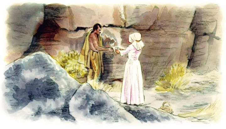 エミリーは岩に絵を彫っている先住民の男に水を差し出し、コンタクトを試みる。