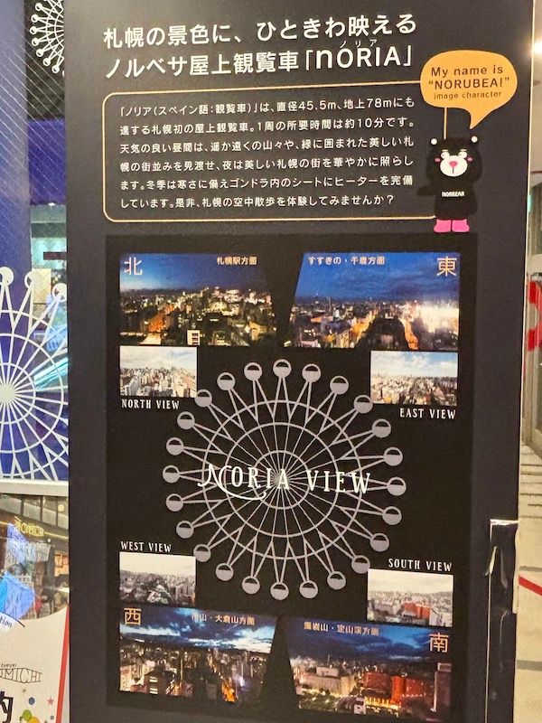 地下鉄すすきの駅から徒歩1分。商業施設「ノルベサ」7階屋上に位置するのが街の観覧車・ノリアです。