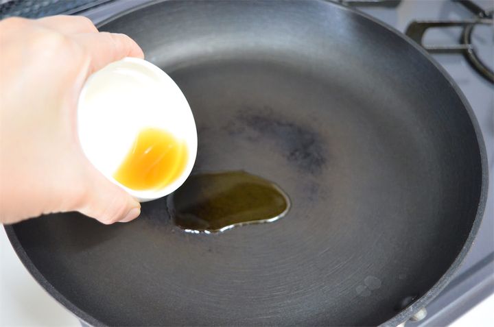 2. 熱したフライパンに油を引き、生地をスプーンですくい落とし、食べやすい大きさに形を整える。フライ返しなどで少しおさえながら、こんがりと色が付くまで焼いたら完成。