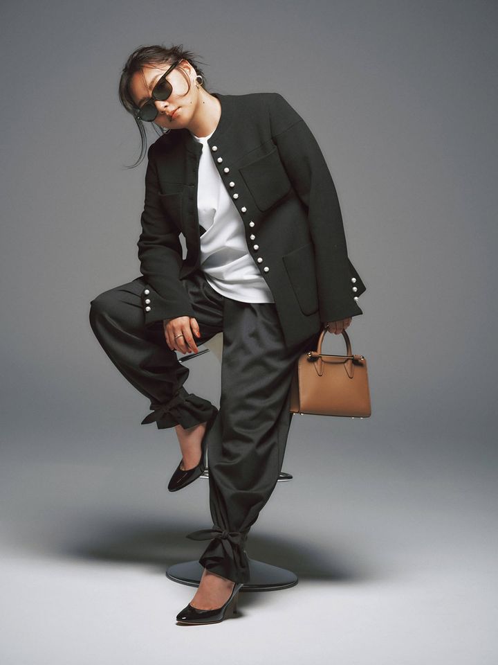ジャケット¥106,700(SeaNew York/S&T)トップス¥11,550(サードマガジン)パンツ¥31,900(エイチ ビューティー&ユース)バッグ¥84,700(ストラスベリー)パンプス¥59,400(ペリーコ/アマン)サングラス¥52,800(モスコット/モスコット トウキョウ)ピアス¥26,400リング¥19,800(ともにブランイリス/ブランイリス トーキョー)