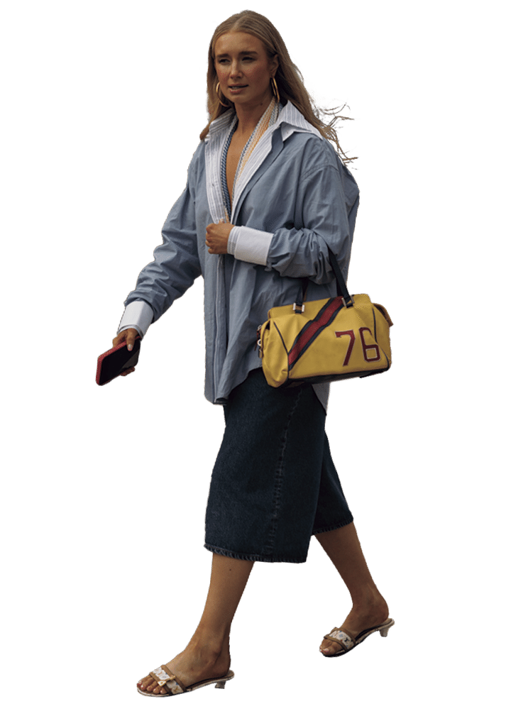 今季、ファッショニスタのあいだで【デニム】も「ひざ丈」や「ブラウン」が流行中!