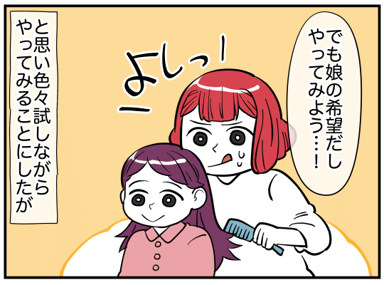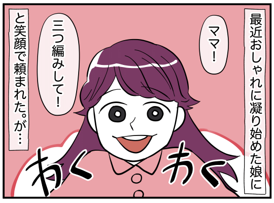 がんばって三つ編みしたのに…! 残念ながら娘からは大不評。
