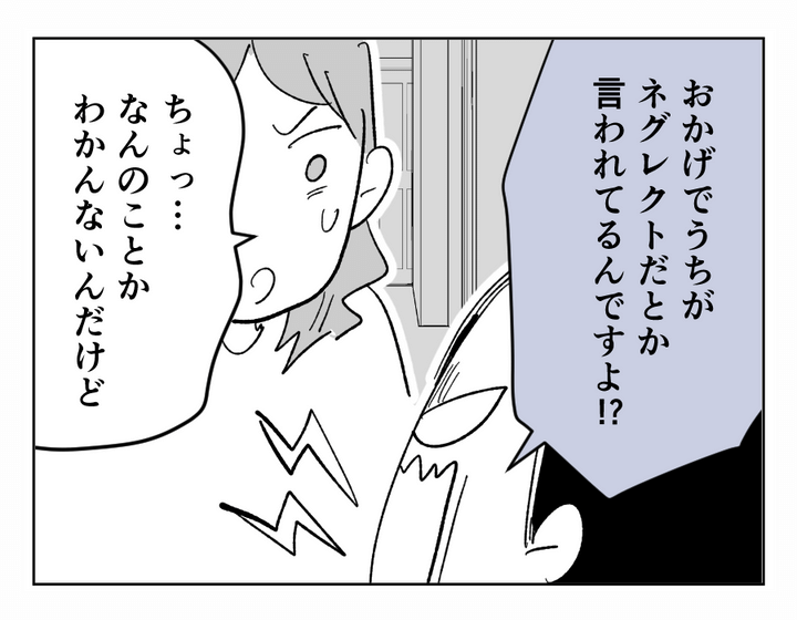 チサトさんの義妹・アヤさんは、フルタイムで働いています。アヤさんの息子・トウマくんはよく体調を崩して保育園を休みますが、アヤさんは「仕事を休めない」と言って、チサトさんに強引に預けて出社していきます。しかし、とあるきっかけで保育園を休んだトウマくんが親戚に預けられ、そこで面倒を見た親戚から「あの家はネグレクト」とうわさが広まってしまいました。アヤさんは「うわさを広めたのはお義姉さん!」と誤解しているようですが……。