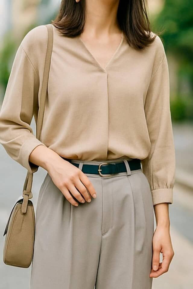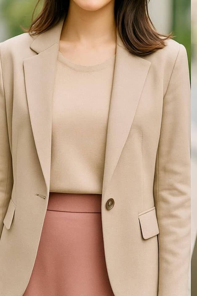 定番のベージュコーデも、組み合わせ次第では“くすみ”や“老け見え”の原因に。おすすめは、ピンクベージュやオフホワイト、ミントグレーなどの血色カラーをプラスすることです。