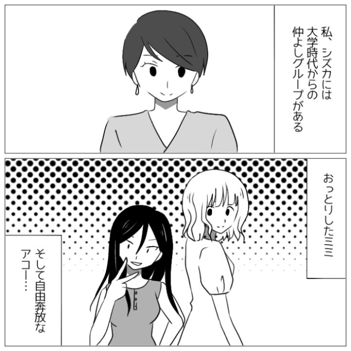主人公のシズカには大学時代からの仲良しグループがあります。この中のアコには少し困っていて・・・。