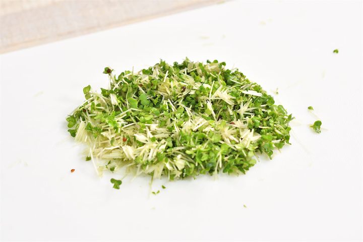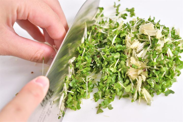 1. ブロッコリースプラウトを細かく刻む。