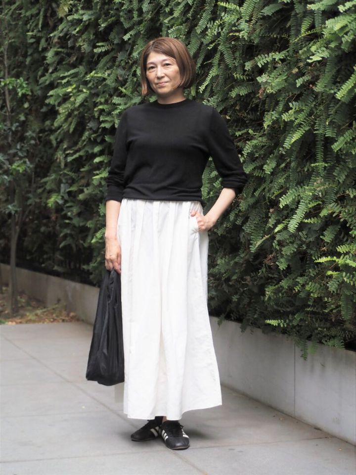 【スナップ】50代が着こなすモノトーン!「ザラ」のニット&スカートをスニーカーでカジュアルに