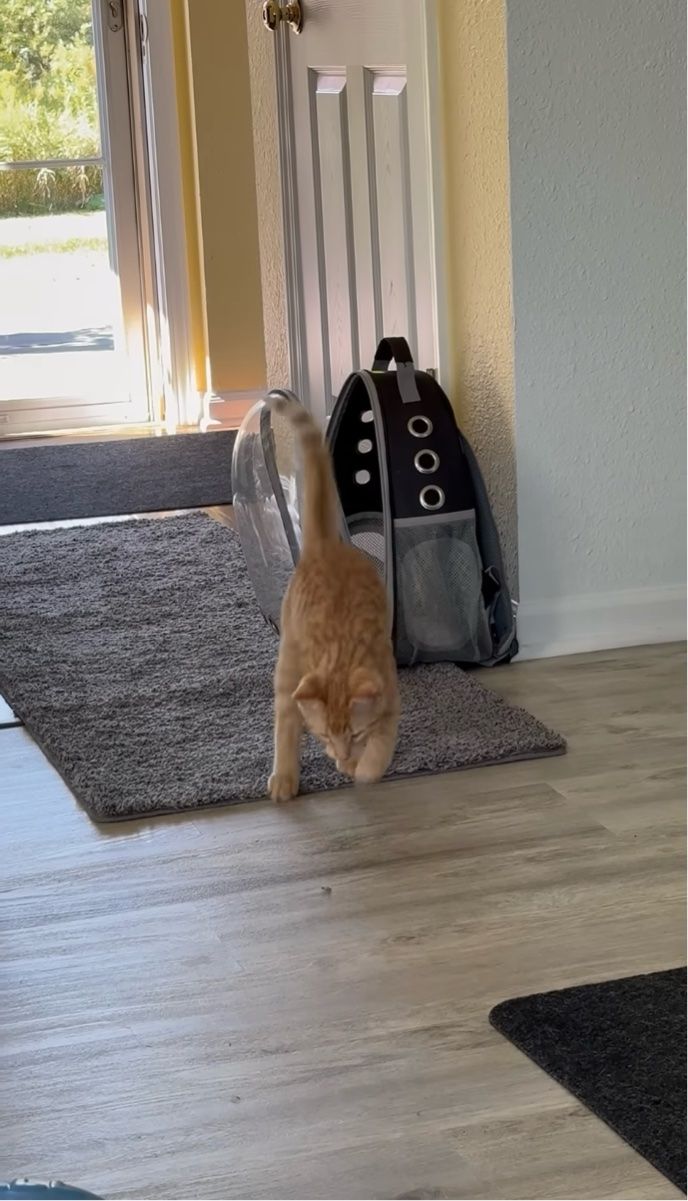 すると、さっそくキャリーバッグからジャンプして飛び出していくのでした。 無事に脱出成功しましたね~。