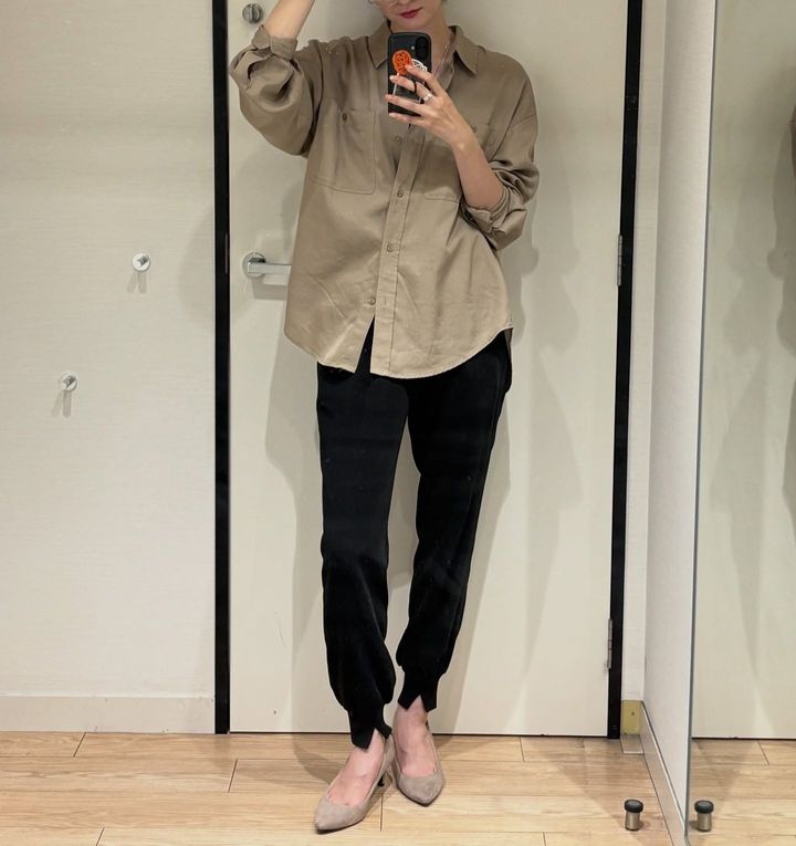 2. やわらか素材で即高見え!とろみシャツで魅せる、骨格を拾わない大人の着こなし【40代の毎日コーデ】