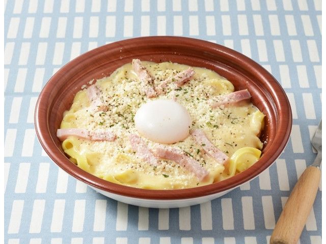 クリーミーなカルボナーラソースと明太子の風味がクセになる明太カルボナーラ。