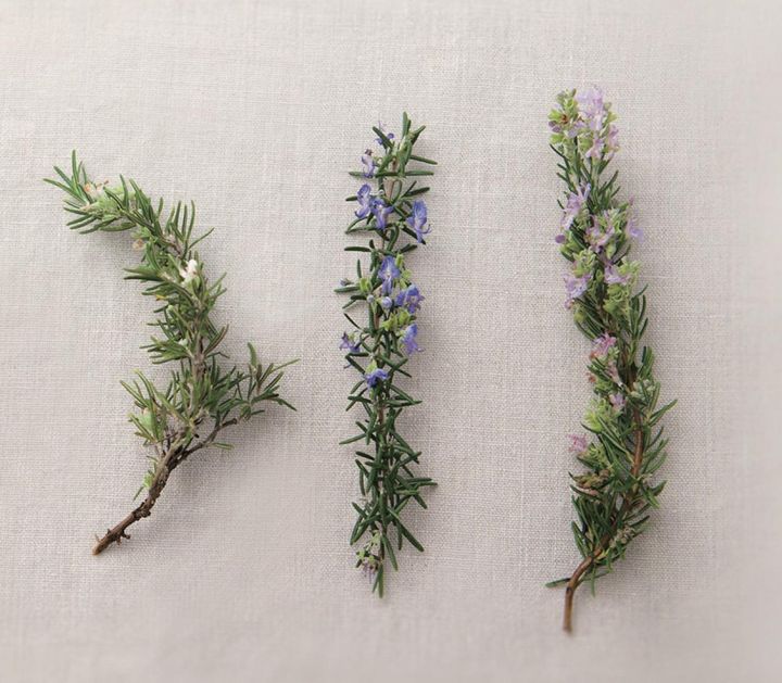 ローズマリーは古くから薬効の強い植物とされ、強壮、健胃、防腐などの作用があるといわれています。料理やティーには、生またはドライの葉を用いますが、特に肉料理の香りづけによく利用されます。香りは刺激的ですが、加熱すると弱くなるので好みで量を加減して。花は飾って楽しめます。