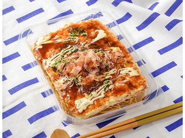 イカを使用したお好み焼と焼そばを組み合わせた、ボリューム感ある商品です。