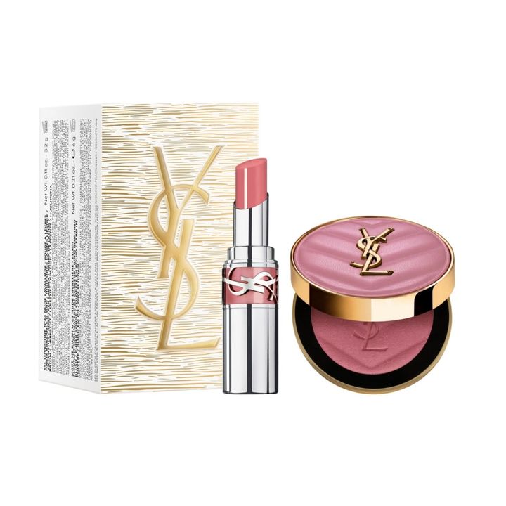 イヴ・サンローランのシグネチャーカラー“No.44 ヌード ラヴァリエール”のメイクセット。セットに入る2アイテムは、洗練さと官能さを引き出す組み合わせです。