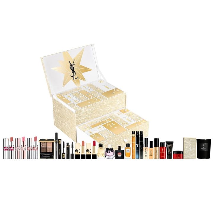 毎年大人気のアドベントカレンダーは、「YSL ラブシャイン」のリップや「クチュール ミニ クラッチ」の現品をはじめ、メイクアップ、スキンケア、フレグランスなどのミニアイテムが入った超豪華な内容。星が大胆にデザインされたパッケージが、アイテムを取り出す時間をより特別なひとときにします。