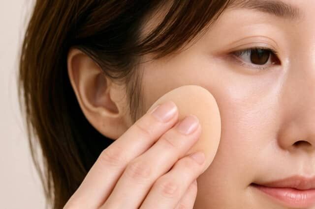 下地は「全顔に均一に塗る」よりも、“必要な部分だけ”が正解。くすみや毛穴が気になる頬や小鼻まわりを中心に、少量ずつ指でトントンと塗り込みます。仕上げにスポンジで軽く押さえれば、余分な油分をオフしながら密着度が格段にアップ。