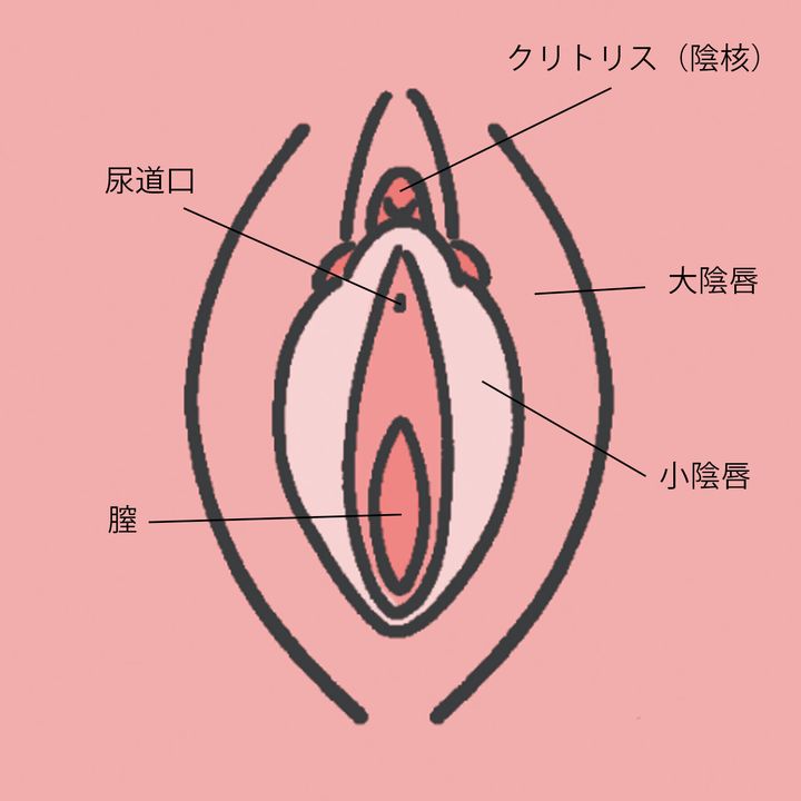 小陰唇はビラビラしている部分。粘膜部分を乾燥から守り異物が入らないようにする瞼のような役割があります。大陰唇は衝撃から守るクッションの役割。クリトリスは性感帯。腟は性交時の男性器の受け入れや産道に。