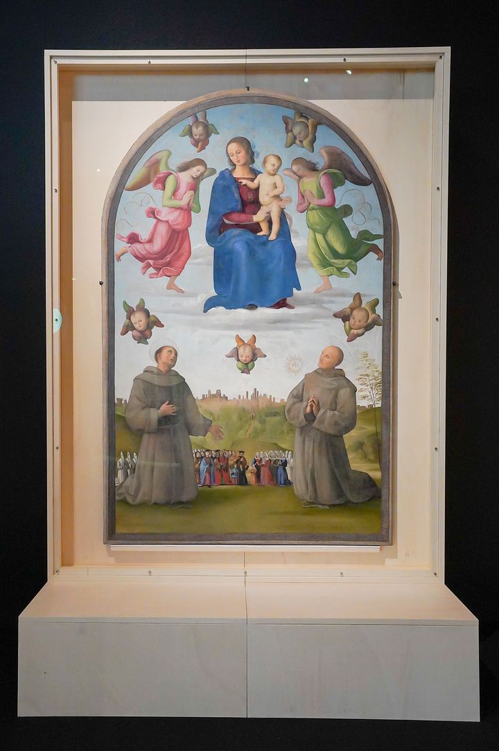 ルネサンス初期を代表する画家ペルジーノが描いた宗教画、『正義の旗』(Gonfalone della Giustizia)。聖母子と天使、聖フランチェスコらが登場し、神の慈悲と人間の救済を祈願する場面が表現されている。罪を悔い改める者に差し伸べられる「正義と赦し」の象徴として、ウンブリア地方の宗教儀式で用いられた。イタリア国外初公開。2025年10月25日から2026年1月12日まで大阪市立美術館で開催される特別展「天空のアトラス イタリア館の至宝」にて公開が予定されている。