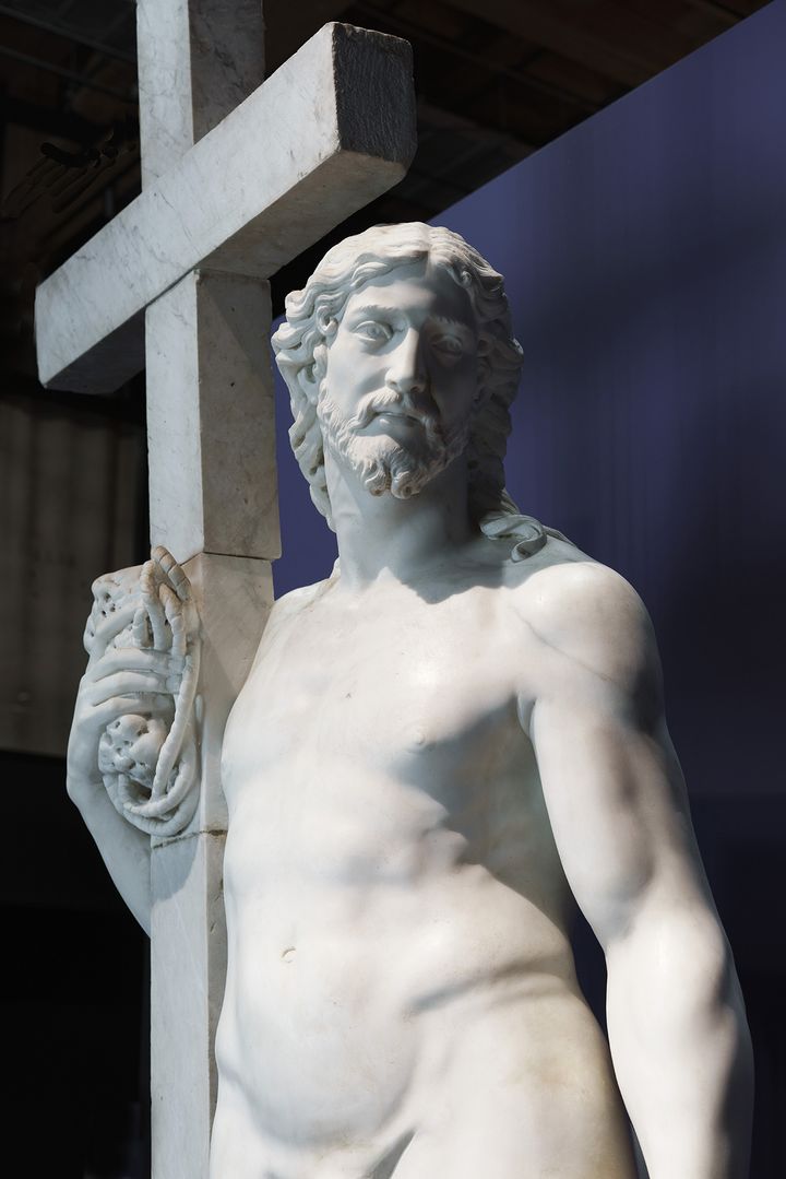 イタリア館のなかでも特筆すべきが、ミケランジェロによる彫刻『復活したキリスト』(Il Cristo Risorto)。普段はローマ近郊の教会に静かに置かれている、一般にはあまり知られていない貴重な作品だ。
