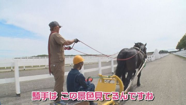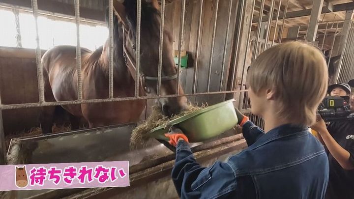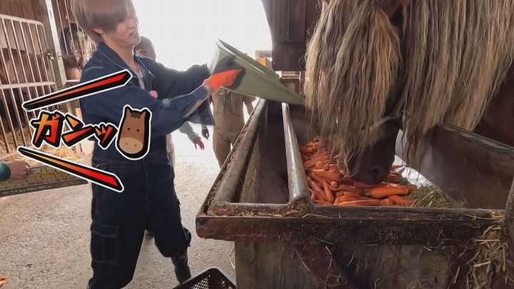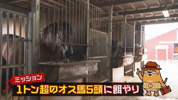 松尾アナ:「1トン以上あるオス馬、5頭分のエサを用意していただきます」