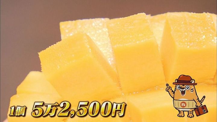 初出荷のときには雪国で育てられた希少なマンゴーとして、1個5万2,500円の値が付いたんだ~!