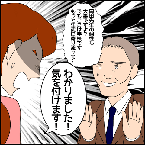 校長から「生徒に慕われる川合先生を参考にしてはどうか」と言われた岡田。