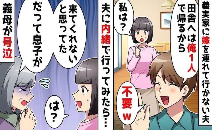 夫「実家で休む♪お前は来るな!」自分だけ義実家に帰省。なんかヘン!内緒で義実家へ♡義母が号泣!?実は