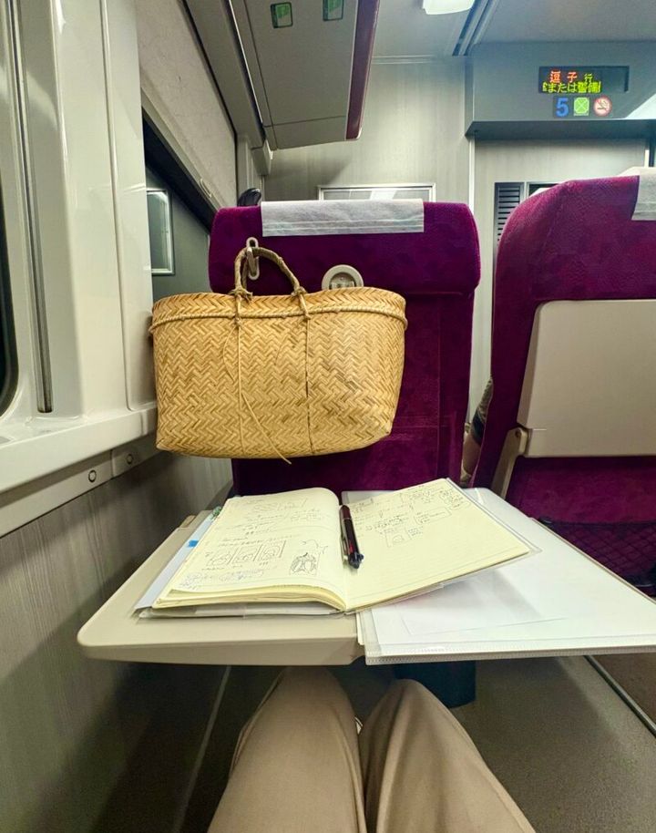 「電車で帰るとある日。まだ少し仕事が残っていたのでグリーン席を取って、書斎がわりにしながら帰りました」