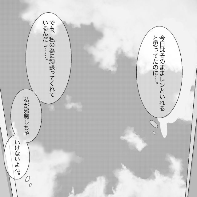 「今日はそのままレンといられると思ってたのに・・。でも、私の為に頑張ってくれているんだし・・。私が邪魔しちゃいけないよね」と自分に言い聞かせるのでした。