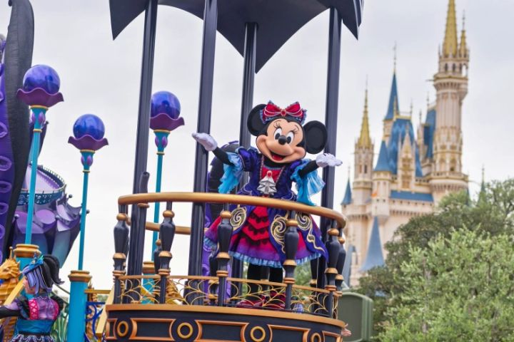 ミッキーやミニーたちもハロウィーンの衣装で登場!濃ブルーやレッド、パープルなどの配色がハロウィーンらしくとってもキュート♡キャラクターと一緒にゲストたちもダンスを踊り、会場一体となってパレードを盛り上げていきます。