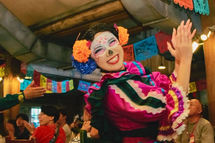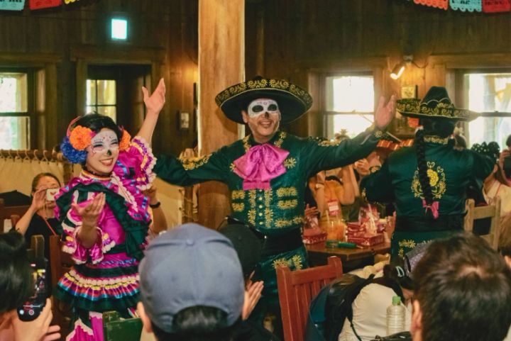 さらに、プエンテ・ブエナ・ヴィスタ周辺では、アトモスフィア・エンターテイメントを開催!愉快なファミリーが陽気なマリアッチと華やかなダンスで、ゲストたちと一緒に「死者の日」をお祝いします。こちらは事前に開催時間・場所を告知しないエンターテイメントなので、遭遇できたらラッキー♡
