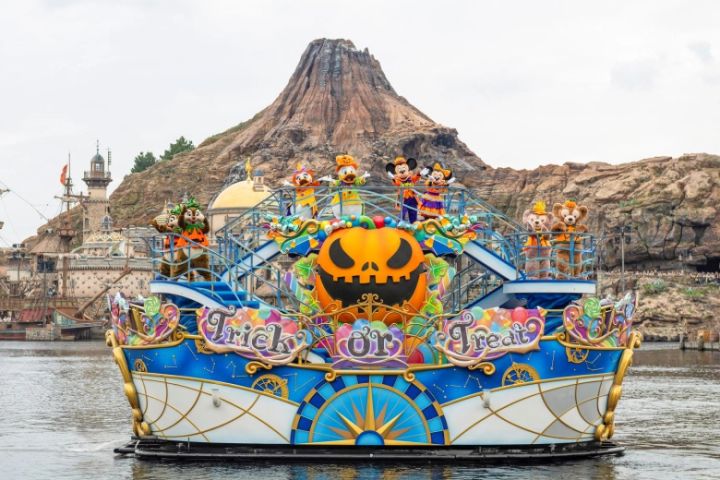 メディテレーニアンハーバーで開催される「ディズニー・ハロウィーン・グリーティング」では、かぼちゃカラーに身を包んだキャラクターたちが登場!大きなかぼちゃとお菓子をたっぷり載せた船で、ゲストたちにご挨拶しながら、ハーバーをぐるりと一周していきます♪