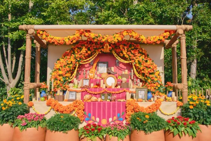 魂を導く花とされるマリーゴールドの花、『リメンバー・ミー』のキャラクターたちやギターのモチーフがあちこちに飾られており、まるで映画の世界に入り込んだかのような気分が味わえます!