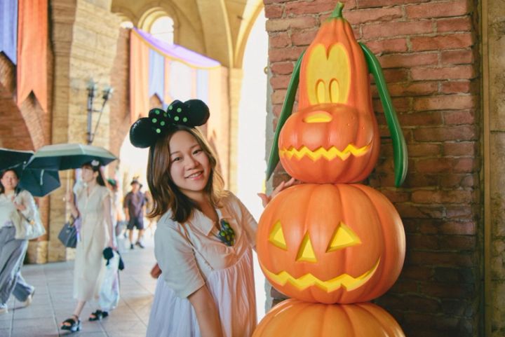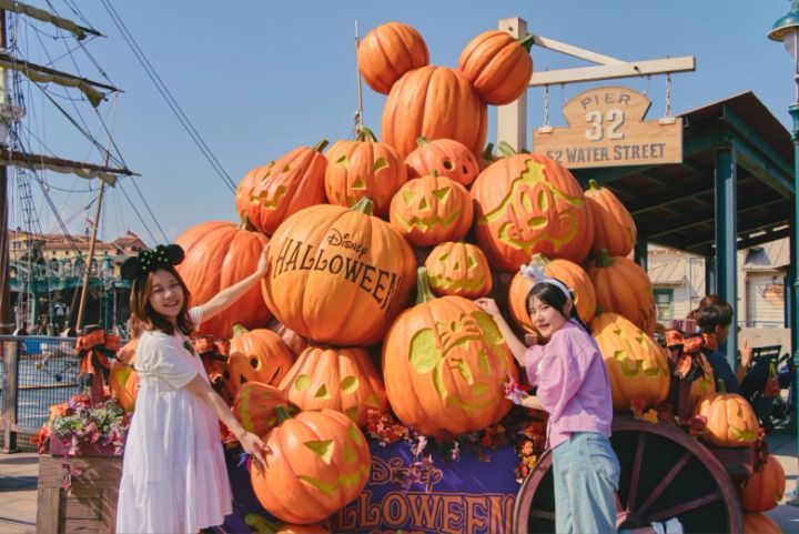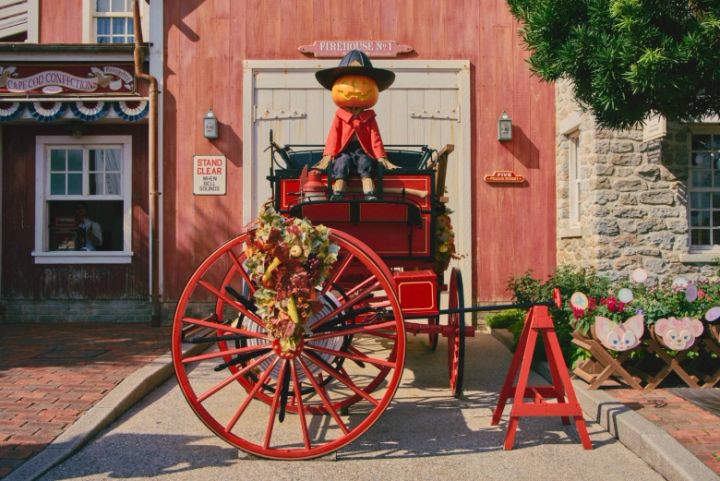 ワールドバザールには大きなかぼちゃモチーフのミッキー型オブジェがあったり、シンデレラ城近くにはかかしの姿になったキャラクターたちがいたりと、今しか見られないデコレーションが盛りだくさん!