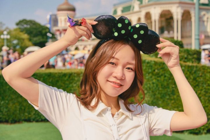 2人が身につけているのは今回のイベント限定のカチューシャ。ミニーマウスのリボンが蛍光ドットになっていたり、ゴーストが乗っていたりと、ポップなデザインがハロウィーン気分を盛り上げてくれます♡