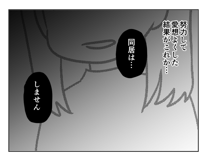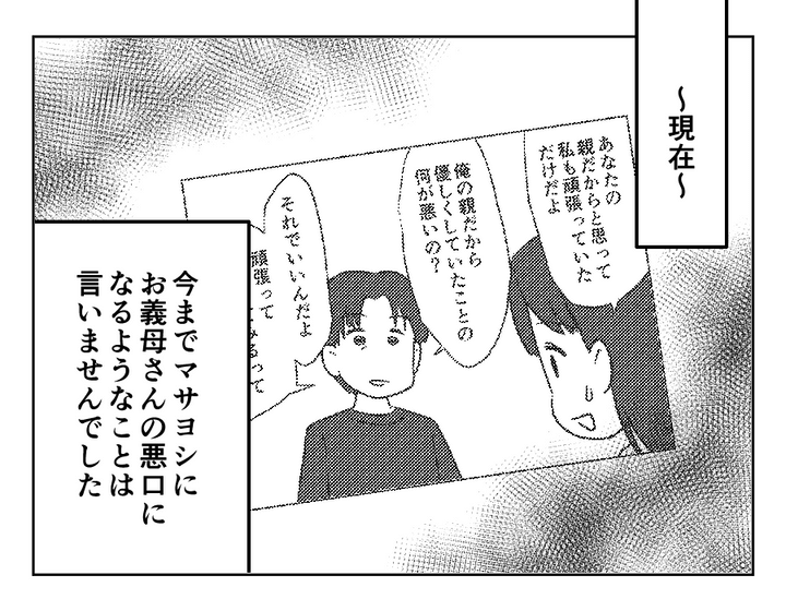 今までクミさんがお義母さんに文句も言わず従ってきたのは、マサヨシさんの親だからです。悪口を言わなかったのは配慮です。それなのにいつの間にか、嫁姑関係が良好なもので、クミさんが喜んで同居すると思っていたマサヨシさん。クミさんは、ハッキリ言わないと伝わらないのだと悟りました。