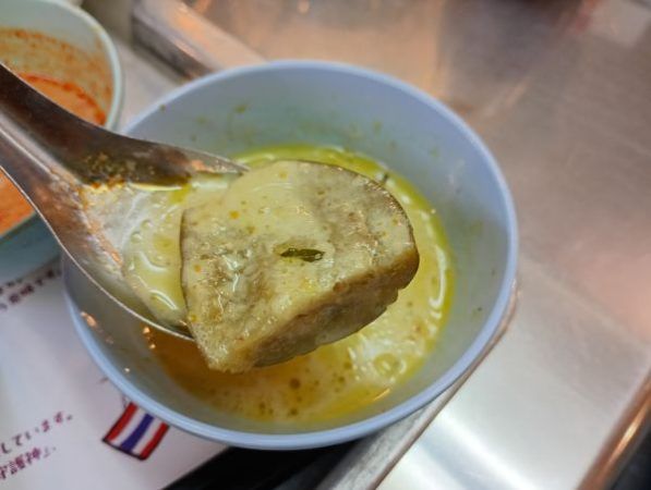 グリーンカレーには大きなナスが。トムヤムクンスープもごはんがすすむ美味しさです。