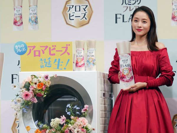 「ハミングフレア」から、ビーズ型の洗たく用香りづけ剤「ハミングフレア アロマビーズ」が11月1日(土)に新発売。イメージキャラクターを務める石原さとみさんが発表会に登壇しました。