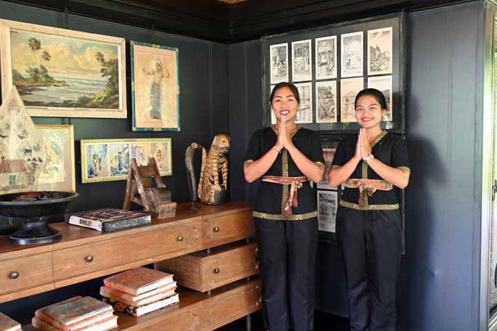 アンティーク家具やアート作品、書物、ファブリックなどの装飾品は、建築家ビル・ベンスリーとリゾートのオーナーが海外のオークションやインドネシア各地を回って集めたそうです。