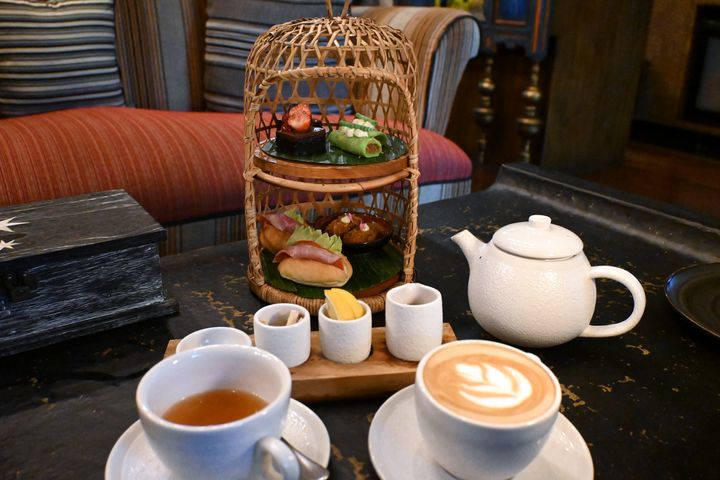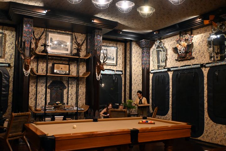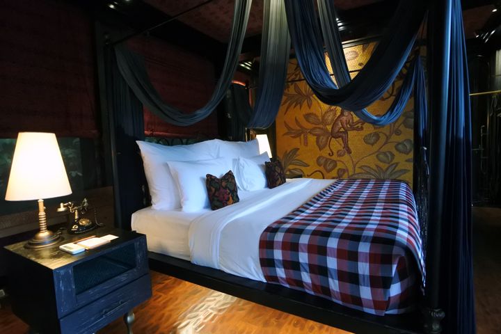 カクテルタイムにゲストが集まる「オフィサーズ・テント」は、各国のカペラ・リゾートでいうところの「リビングルーム」(ラウンジのような存在)。開拓時代に1日の仕事から戻ってきた男たちが集う“ジェントルマン・クラブ”のイメージだそう。昔日のインドネシアのモノクロ写真や当時を彷彿させる家具が印象的です。