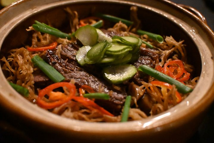 うまみたっぷりの牛肉の釜めし。