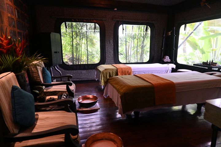 森の中に佇むスパのトリートメント・テント。