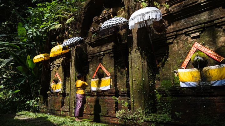バリ島ならではの、スピリチュアルな体験も本格的。心身を浄化する伝統的な儀式「メルカット」を、「ア・ソウル・リボーン」というアクティビティとして体験できます。バリ島の女性の正装クバヤを身にまとい、ウォス川のほとりの寺院まで森の細道を下りていき、川のせせらぎに包まれながら、儀式を受けます。