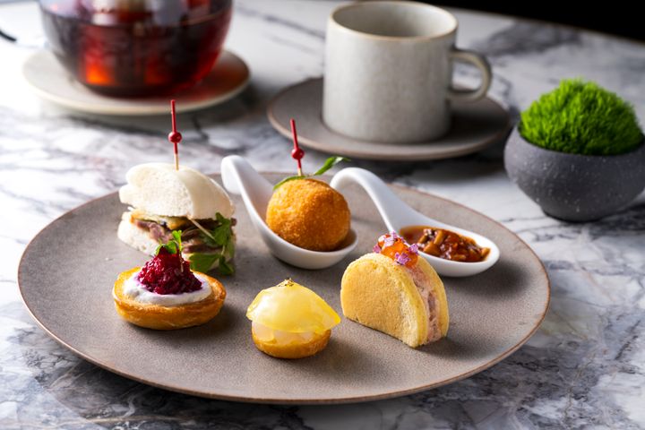 同ホテルのシェフが手掛ける季節のセイボリーは全5品。旬の素材を使用し、秋らしい味わいを取り入れたアレンジで、スイーツとのバランスのよいラインアップとなっている。