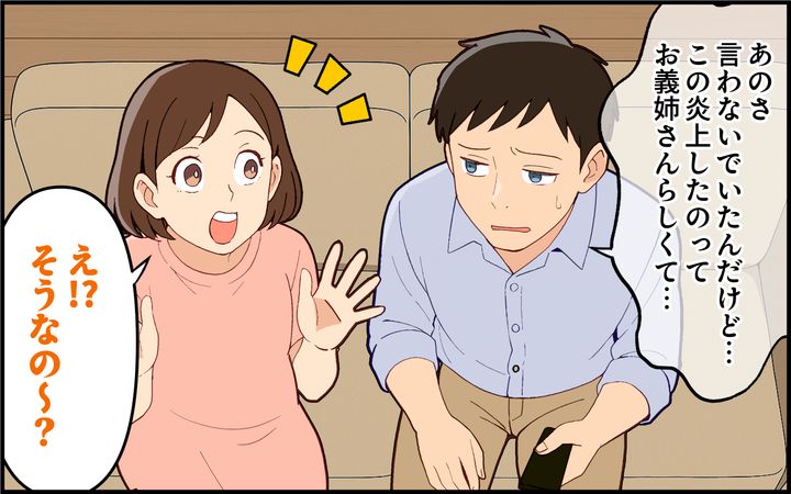親子で胃腸炎を患っているのに、引っ越し祝いをすると言って妊娠4ヶ月の妻の家に家族で押しかけて来た自分勝手な義姉。その後、妻は胃腸炎に感染。謝罪どころか自業自得と妻夫婦を小馬鹿にする義姉に、夫は絶縁を宣言する。そして、妻がインフルエンサーの友人に義姉の非常識なSNSを紹介すると、バイトテロのような迷惑行為は瞬く間に炎上。義姉は働いていた店もクビになったようで!?