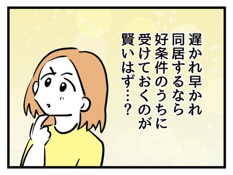 降ってわいた義母との同居話。よく考えれば良い条件過ぎて怖いくらいなのに、あまりに夢のような話に妻は心惹かれているようです…。
