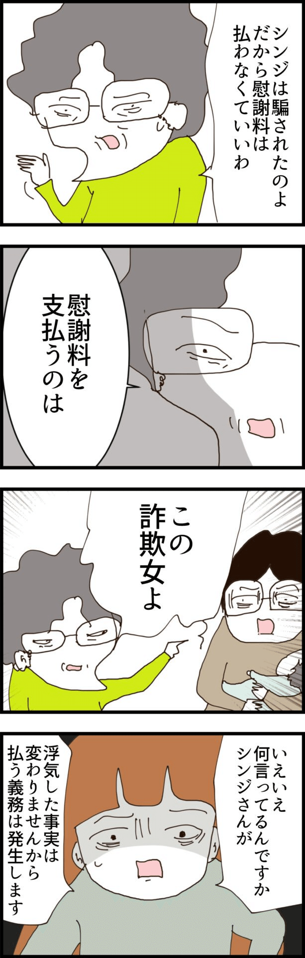 夫はまひろに騙されたのだから、慰謝料を支払う義務はないと主張する義母。