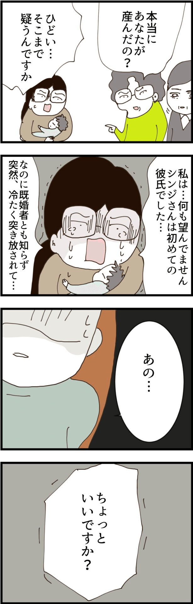 義母はまひろが赤ちゃんを産んだことすら疑っています。まひろと義母の口論が続くなか、止めに入ったのは置き去りにされたままの妻でした。