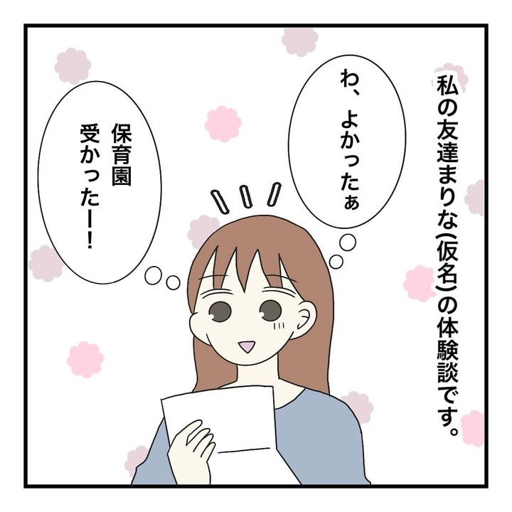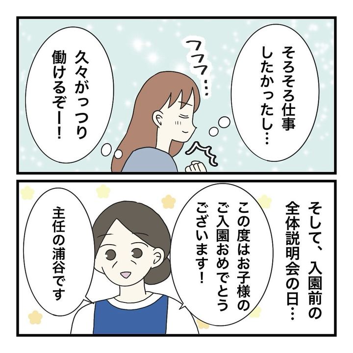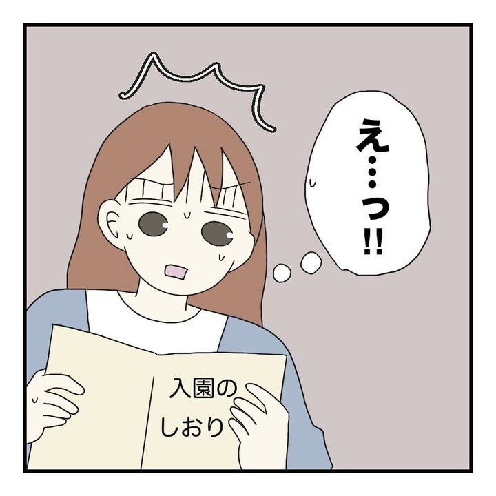 久しぶりに仕事に復帰することになった保育士の母は、娘ふたりの保育園が決まり安堵していた。第4希望の保育園だったこともあり入園説明会で初めて園に行くと、説明会で配られた資料には入園までに準備する物が細かく書かれていて…。説明を聞きながら母は保護者の負担が多すぎることに青ざめてしまう。