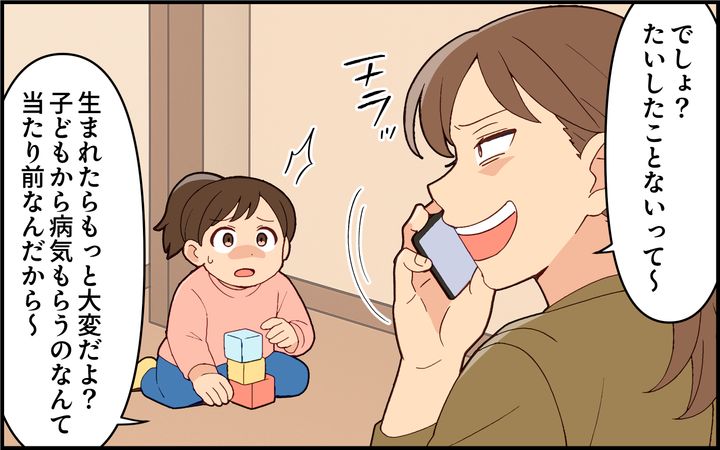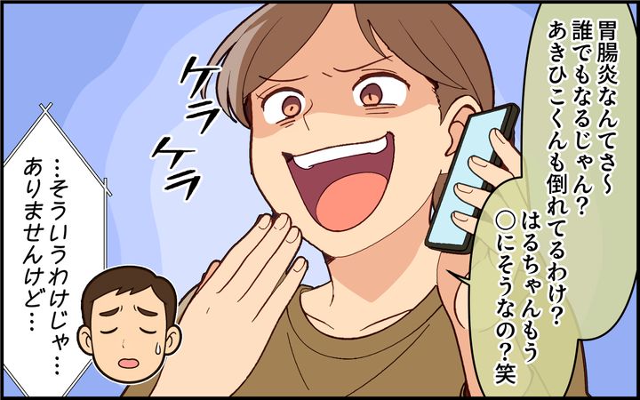 親子で胃腸炎を患っているのに、引っ越し祝いをすると言って妊娠4ヶ月の妻の家に押しかけて来た義姉一家。途中で娘が嘔吐しても片付けを妻に丸投げし、平然とビールを飲み続ける義姉は非常識極まりない。見兼ねた夫の抗議によって帰ってもらったが、後日、妻への感染が発覚する。しかし、義姉は悪びれるどころか、感染したのはそっちの問題で自業自得だと逆ギレして!?