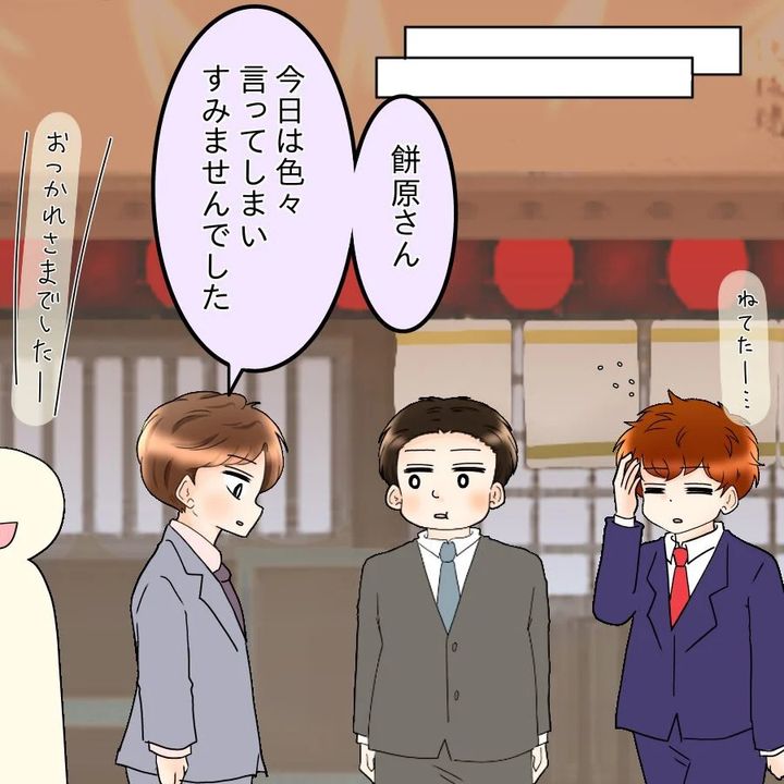 先輩に対して少し失礼な物言いをしてしまったかもと、飲み会終わりにけんとに謝罪するエースさん。